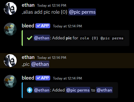 If you’re interested in creating a command that grants image permissions to a user, you can use the following alias which invokes therole