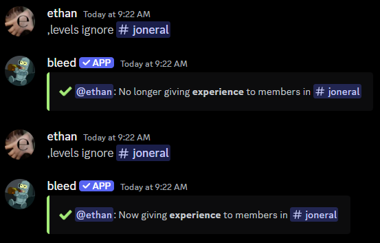 If you no longer want to ignore a channel or role, you can re-run the command.
