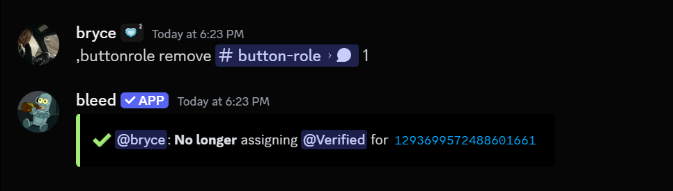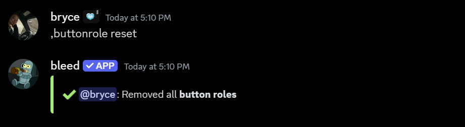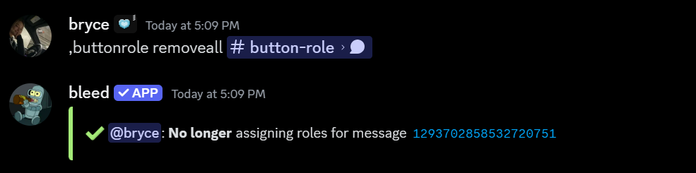 Additionally, you can remove all button roles from a message by using the buttonrole removeall command.