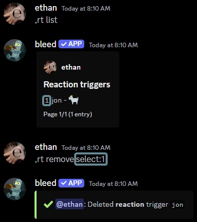 For some commands, you can remove entries by their ID. The ID for entry can be found with thelist