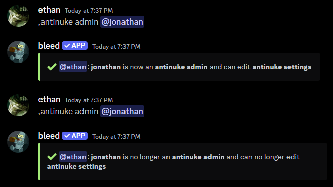 Initially, only the server owner can configure the antinuke. However, you can allow other users to configure the antinuke with theantinuke admin